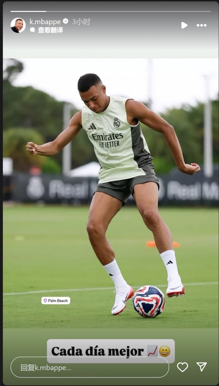 姆巴佩社媒晒出训练照片,配文:“每天都变得更好。”